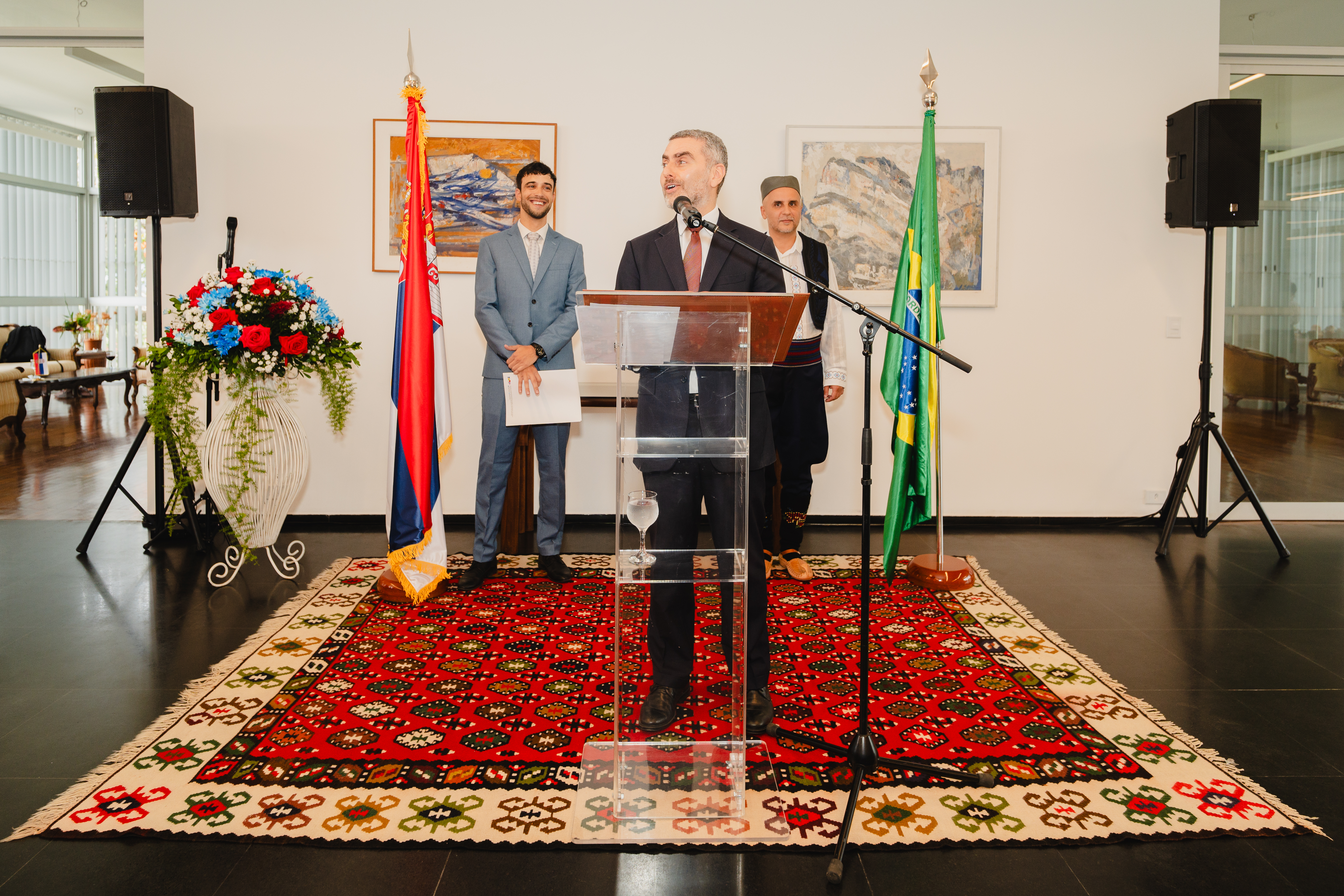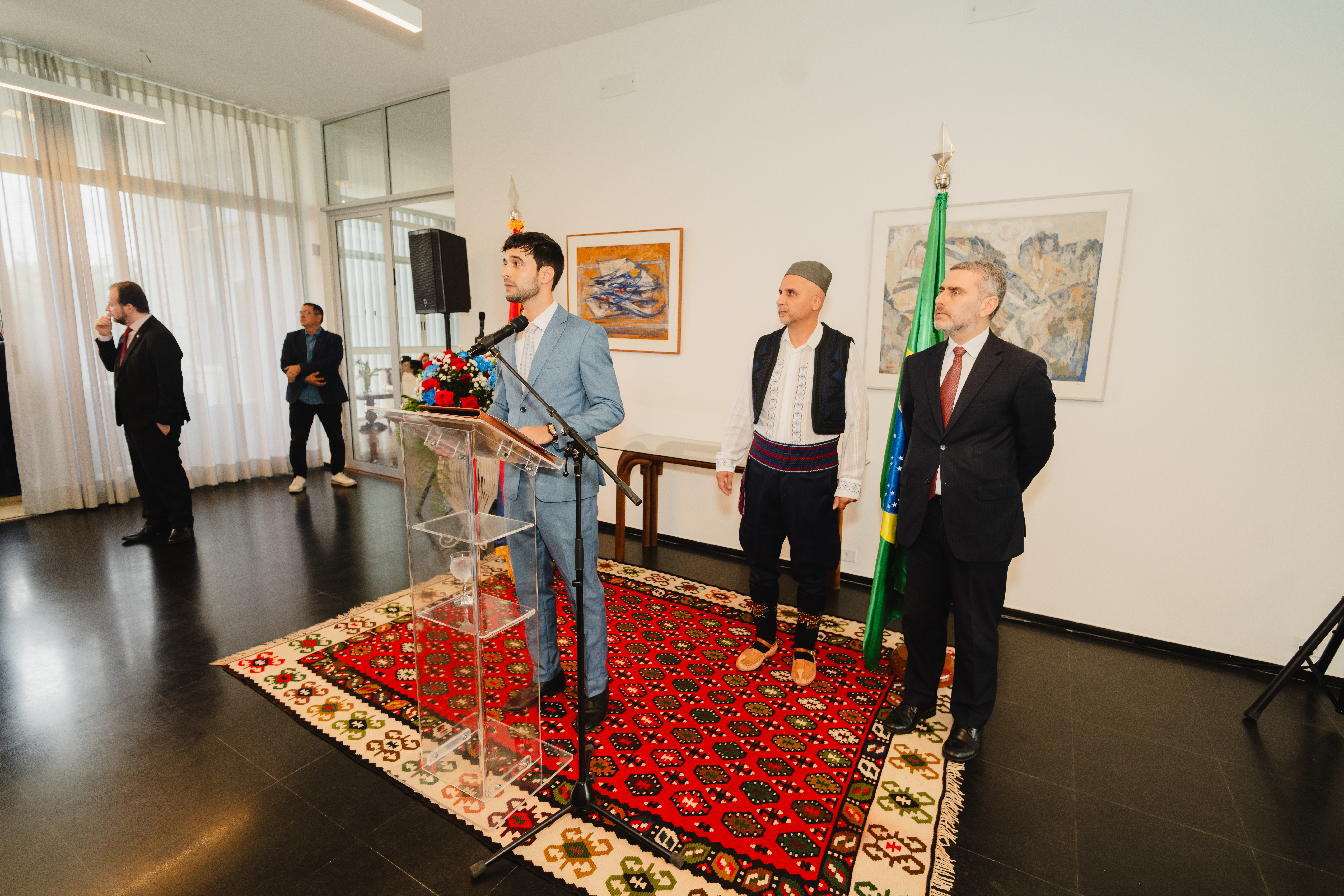 Пријему су присуствовали представници Министарства иностраних послова (секретар за Африку и Блиски исток амбасадор Карлос Дуарте и дипломате из више дирекција, а говорио је начелник Одељења за Европу амбасадор Флавио Голдман), Владе Савезног Дистрикта, Државе Гојас, Државе Мато Гросо, Савезне полиције, амбасадори и дипломате, пословни људи, свештенство Српске православне цркве и парохија Митрополије саопаулске и свег Бразила Антиохијске православне цркве, те бројни новинари, припадници дијаспоре и српски почасни конзули у Рио де Жанеиру и Санта Катарини.